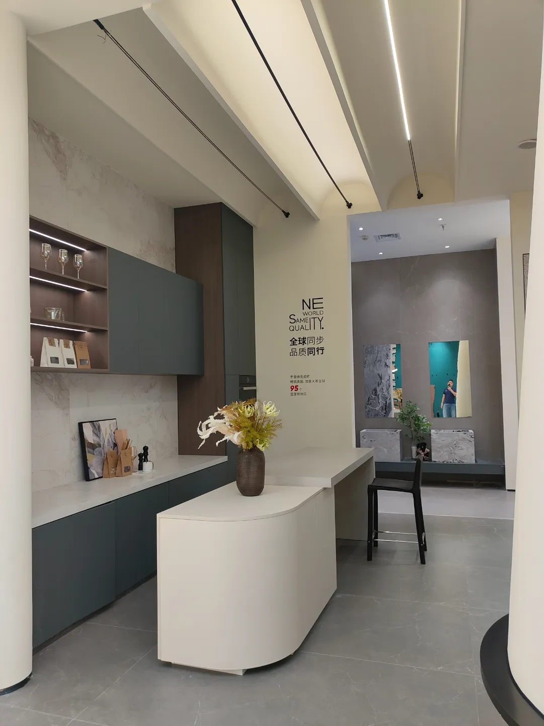 展廳由多個富有特性的場景構成,根據不同系列的產品特性,結合現代簡約的風格,達到產品、建筑、美學等共存的效果,穿梭于此,享受一場視覺盛宴。